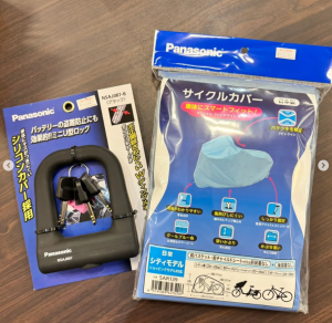 雨風から自転車を守り、錆や劣化対策ができるサイクルカバーもバッテリー盗難対策アイテムのミニU字ロックも電動自転車に乗るならあって損はないアイテムです!