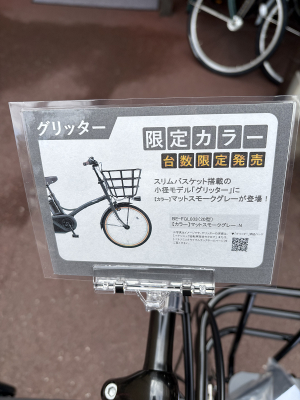 本日は北大路店でも人気の電動アシスト自転車グリッターの限定カラーが2色入荷しましたのでご紹介です。