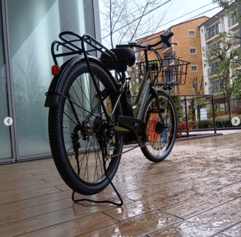 黒っぽい自転車なので、夜の時は少し視認性が低くなりますが