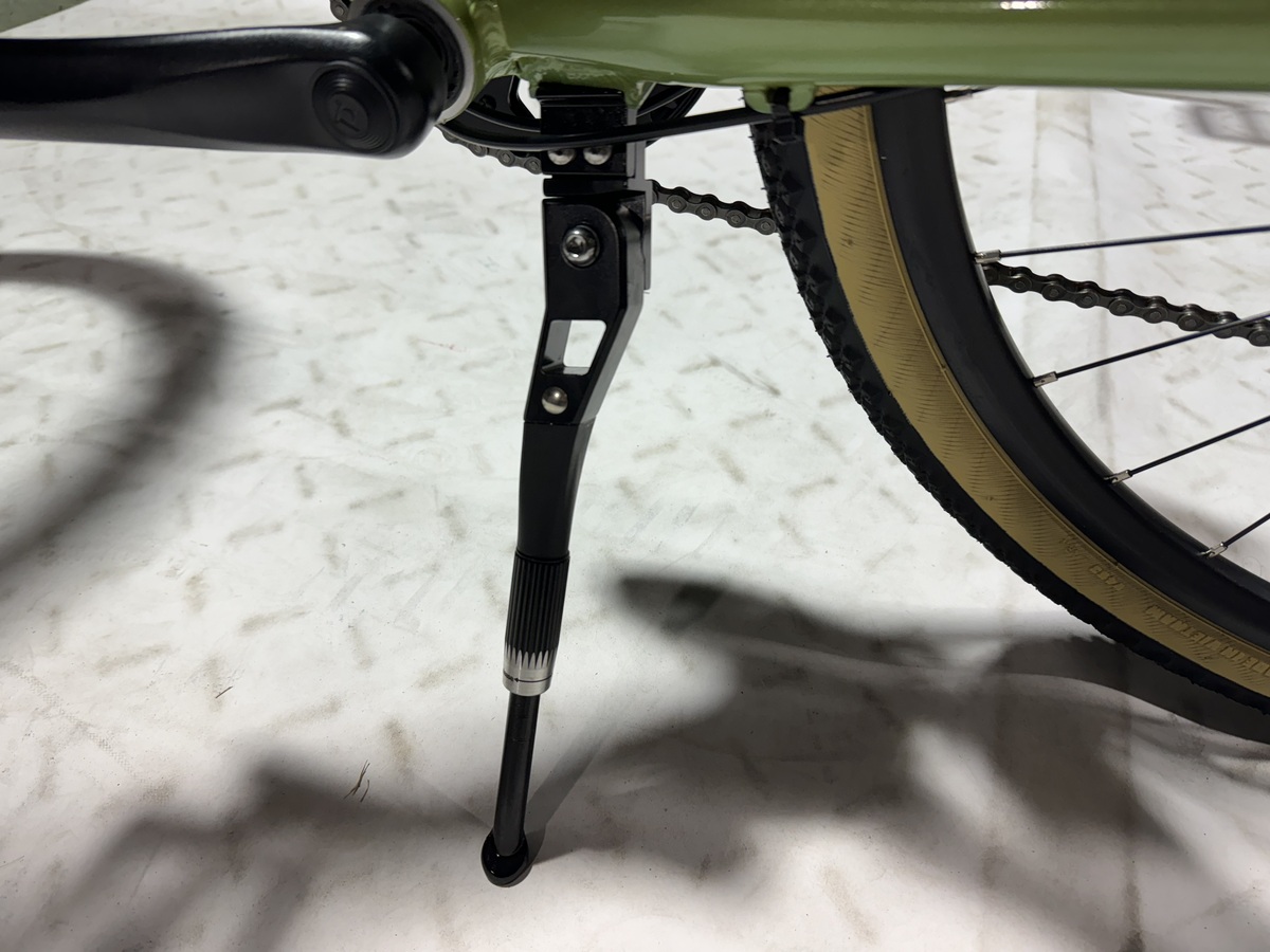 一本足スタンドの自転車に両足スタンドを取り付けたりもできます!