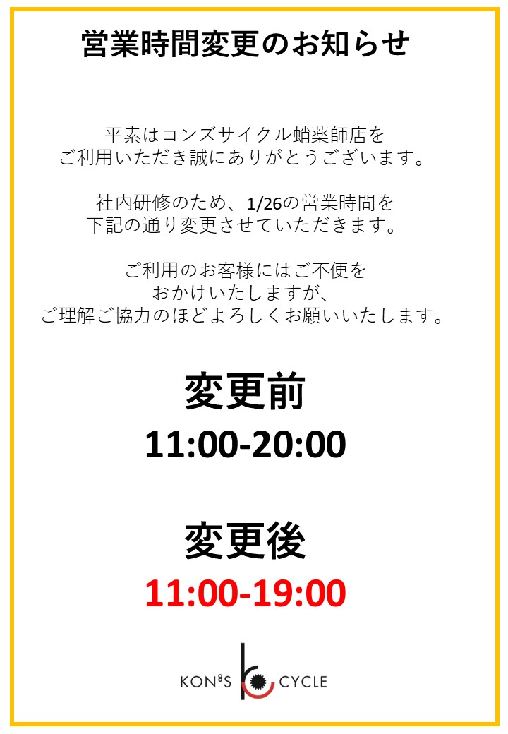 コンズサイクル初売りセール!最終日!