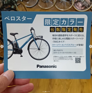 先日もお知らせしましたが、パナソニックの電動スポーツバイク ”ベロスター“ から現在、限定カラーが発売されています。当店にも入荷しており、ご試乗もしていただけます。今回はブルー。