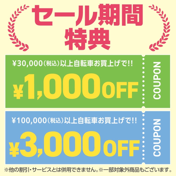 60,000円以上の自転車をお買い上げで——3,000円OFF