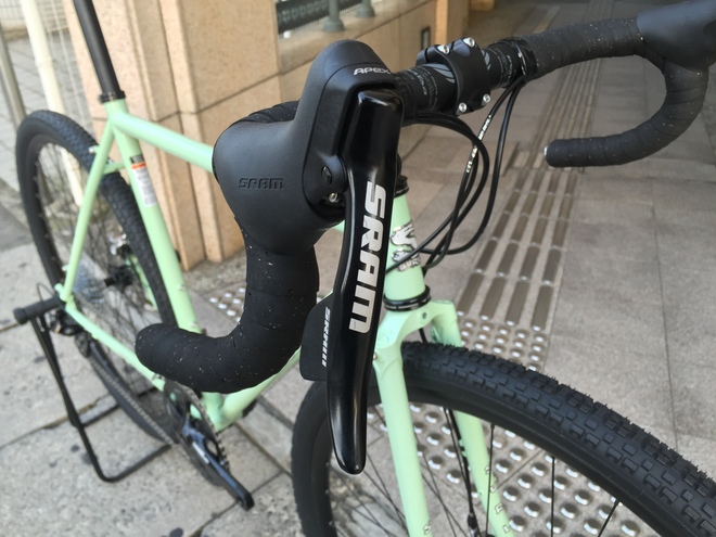 上位モデルの流れをくむ形状に変わって、ワイヤーがバーテープの中を通るのでスッキリした印象。