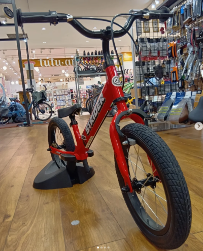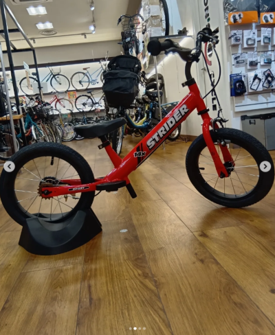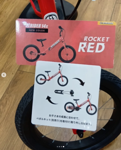 人気のストライダー。3歳半からお乗りいただける14Xに “ロケットレッド” カラーが登場しています。ペダルを装着でき、自転車としても使用できる14インチモデル・・。