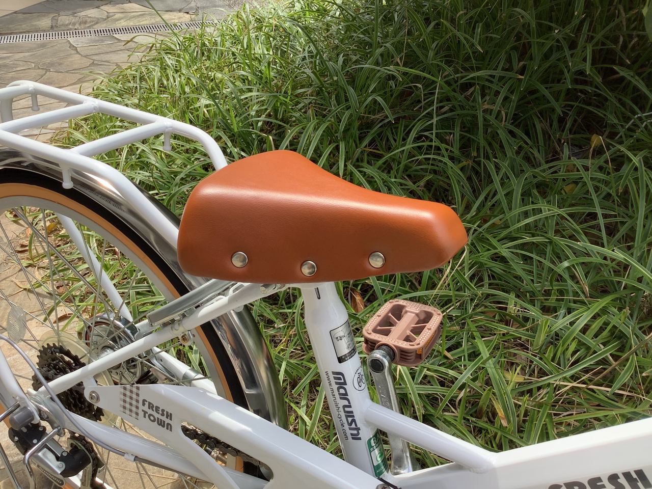 長くきれいに使えるだけでなく、上品な印象もプラスしてくれます。さらに、レトロな雰囲気が魅力のテリーサドルが、全体のデザインにやさしいアクセントを添えています🪑