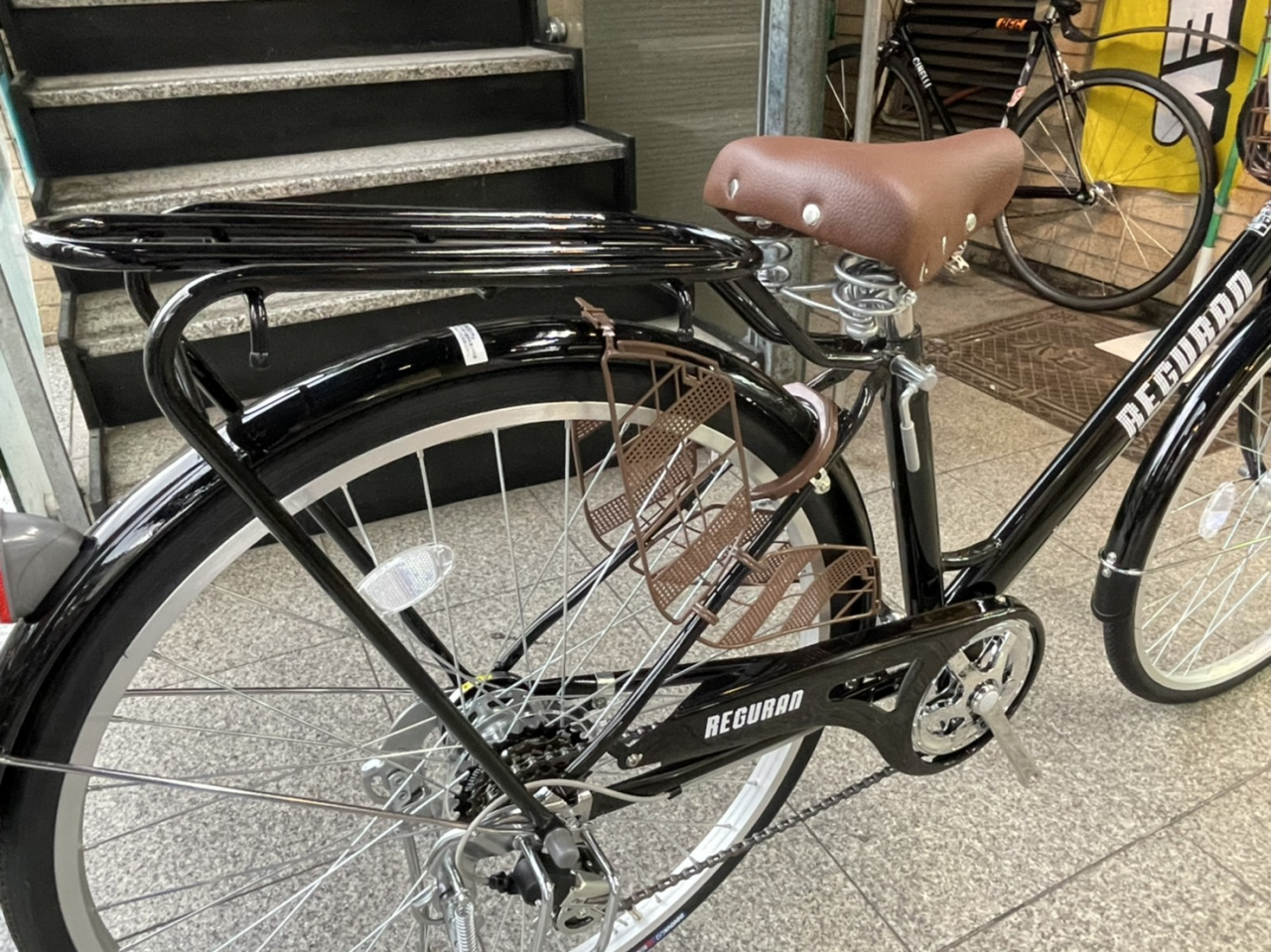 カゴ、ライト、リング錠付きで走りも6段変速で快適です。