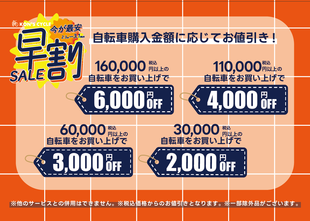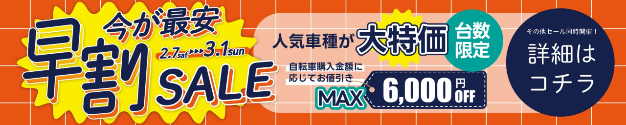 3月になると自転車店は繁忙期になりますので是非この2月中に点検にお持ちください。