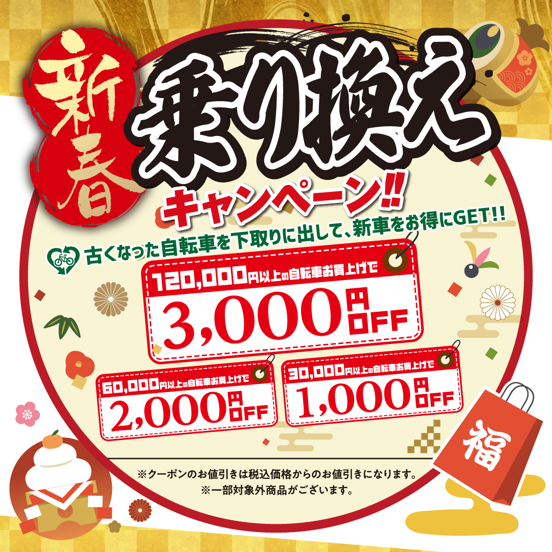 ・30,000円以上の自転車をご購入で、税込販売価格より1,000円OFF