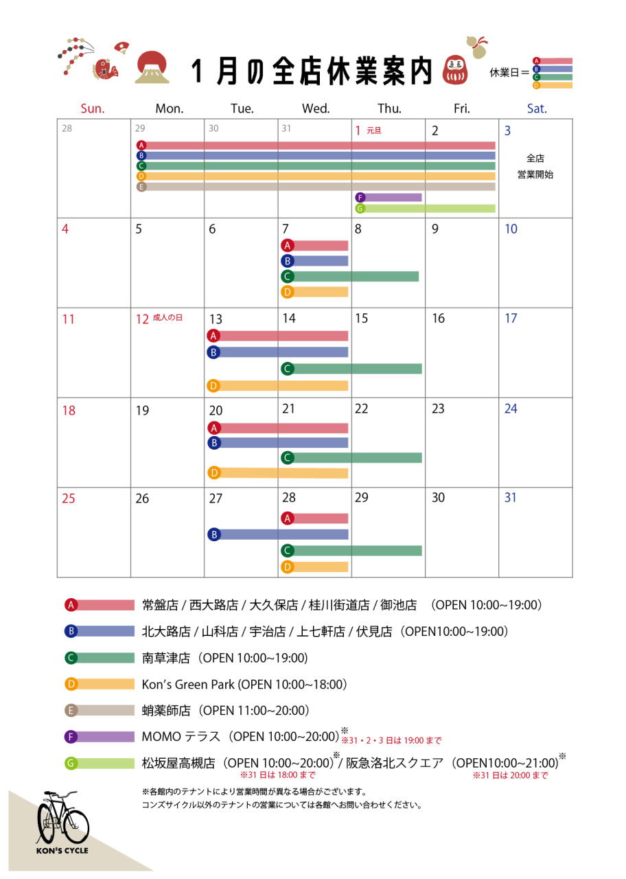 1月の休業日案内
