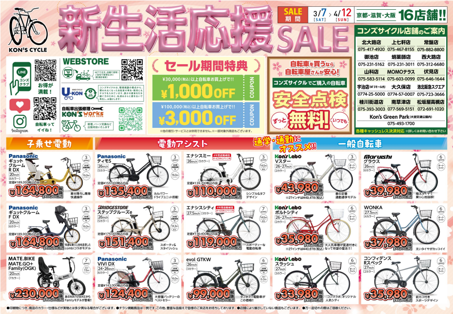 🔵30,000円以上の自転車をお買い上げで…1,000円引き