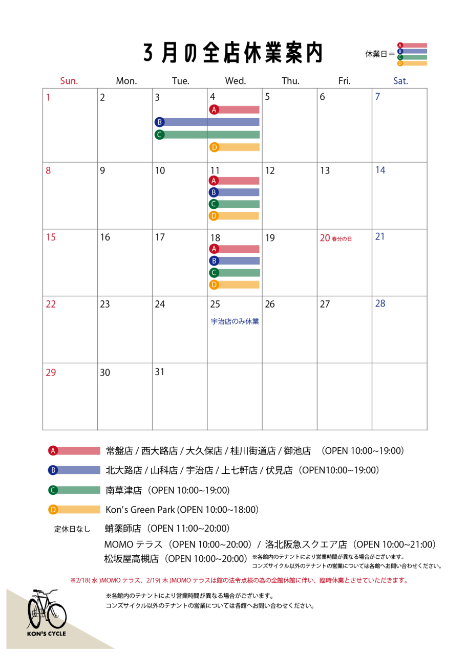 3月の休業日案内