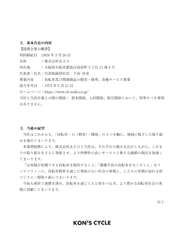 業務提携に係る基本合意書締結に関するお知らせ